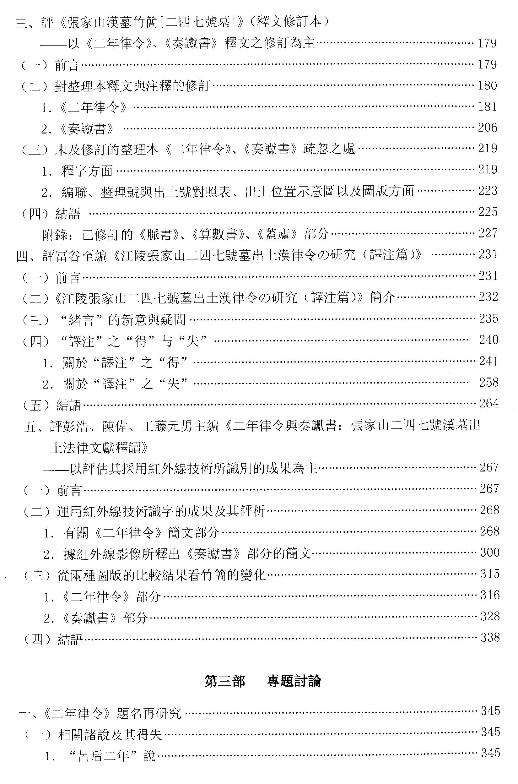 中國青年政治學(xué)院李力教授的專著《張家山247號墓?jié)h簡法律文獻(xiàn)研究及其述評(1985.1-2008.12)》于2009年11月由東京外國語大學(xué)亞非言語文化研究所出版發(fā)行。該書分為三部分。第一部分是介紹張家山247號墓?jié)h簡法律文獻(xiàn)的研究概況;第二部分是對五種研究張家山漢簡法律文書的主要著作的評論;第三部分是對“徒隸”身份等六個專門問題的討論。另有附錄,是張家山247號墓?jié)h簡法律文獻(xiàn)研究論著目錄,分為中文和日文兩類,搜集文獻(xiàn)截止至2008年12月。