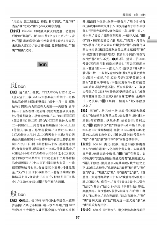 第六,范式創(chuàng)新。本詞典在編寫體例方面作了一些大膽的嘗試和創(chuàng)新,包括創(chuàng)建字詞群、運(yùn)用三重證據(jù)法、引用第一手資料、回答“為什么”等四個(gè)方面,特別是本詞典把那些僅僅是因?yàn)樾巫兓蚪枰舢a(chǎn)生的異體字、通假字、異形詞歸并在一起來(lái)加以解釋,系統(tǒng)建立了異體字群、通假字群、異形詞群等三個(gè)類型的群,對(duì)探求字詞的來(lái)龍去脈,對(duì)詞義的解釋,對(duì)讀者的理解消化,極有助益。