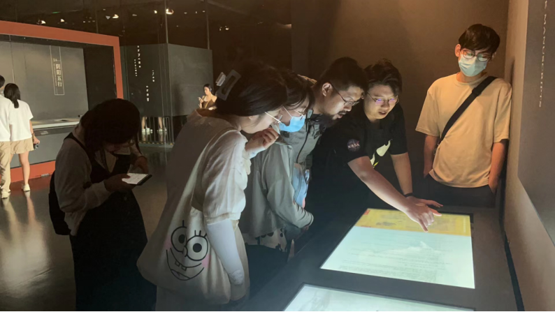 聽過喻老師的講座后,同學(xué)們對馬王堆漢墓的整體情況有了更全面、生動的了解,繼而開始了在湖南博物院的參觀之行。同學(xué)們首先參觀了博物院的特展“美洲豹的傳人——墨西哥古代文明展”,之后按順序參觀了博物院的常設(shè)展覽“長沙馬王堆漢墓陳列”。在展廳內(nèi)陳列的“馬王堆帛書”實(shí)物展柜前,同學(xué)們駐足許久,大家一起逐字研讀討論,現(xiàn)場氛圍十分熱烈。最后,同學(xué)們又組隊(duì)參觀了“湖南人——三湘歷史文化陳列”“方圓之境——湖南博物院藏銅鏡展”等展廳。