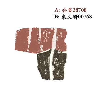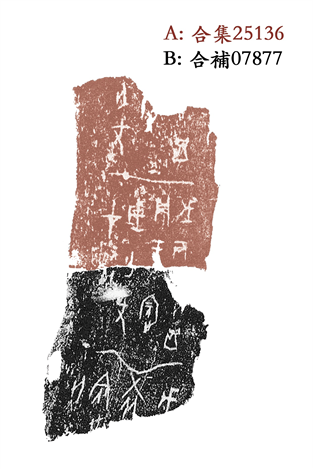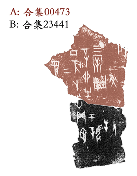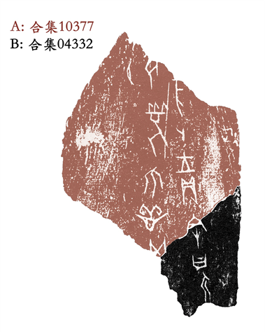 附注:B版,1939年著錄於《殷契遺珠》;A版,70年代於小屯南地考古發(fā)掘出土。流散材料與考古材料相拼綴,較爲(wèi)鮮見(jiàn),往往有值得注意的特殊因由,本綴新增一例。