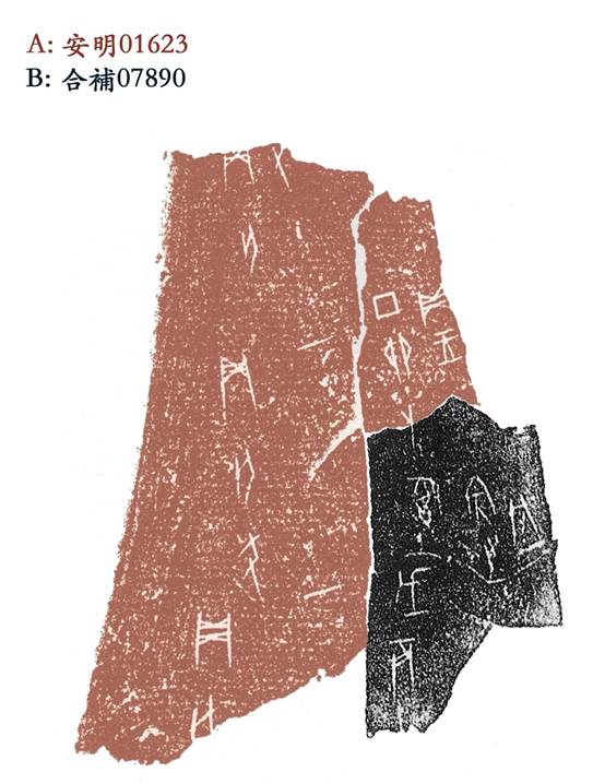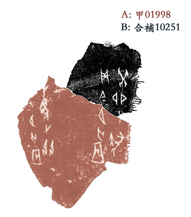 說(shuō)明:本綴原有的殘片雖然字?jǐn)?shù)較多,但因缺少同文例比照,兩殘片上的貞卜事項(xiàng)無(wú)明顯關(guān)聯(lián),殘片表面雜跡干擾較多,殘字筆劃不易辨認(rèn)其原有完整之字,殘片B無(wú)明顯形態(tài)特徵不易判斷其具體部位,各著錄號(hào)亦相隔較遠(yuǎn),依傳統(tǒng)綴合研究方法不易被聯(lián)繫起來(lái),致使其綴合可能性隱藏較深,過(guò)去未得及時(shí)揭示。