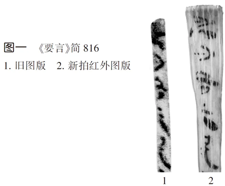 秦漢簡帛書籍多有韻文,釋字時要特別注意韻腳字,重視押韻相合問題。否則就容易出現(xiàn)問題。例如,《守法守令等十三篇·要言》簡815、816“?【得民失法】,是胃(謂)僞詐。失民得法,國□日君。失民失法,罪死不??(赦)。凡治之道,公□?”,原整理者指出:“本篇文字多韻語?!贝宋摹霸p”“赦”押韻,夾於其間的亦係兩小句之末的韻腳字所謂“君”,既文義難通又失韻。對比新拍照片,簡816上半舊刊圖版的左側(cè)邊緣應(yīng)有小部分被誤裁,所謂“君”字亦於形不合,而應(yīng)係“各”旁(圖一)。簡816首字結(jié)合文義可定爲(wèi)“家”,其“宀”旁及“豕”旁最具特徵之右下部分筆劃皆尚存?!渡髯印ね隆罚骸敖褚矅鵁o常道,官無常法,是以國家日繆?!薄案鳌迸匝a(bǔ)足左半,可定爲(wèi)“路”字,“詐”“路”“赦”三字押韻(皆魚部去聲)。“國家日路”之“路”字義爲(wèi)“敗”,其字又作“露”“落”等?!豆茏印に臅r》:“不知五穀之故,國家乃路?!?a href="#_ftn14" name="_ftnref14" title="">[14]零簡1549“?□人言,以路女(汝)家;毋”,“路”字用法亦同。