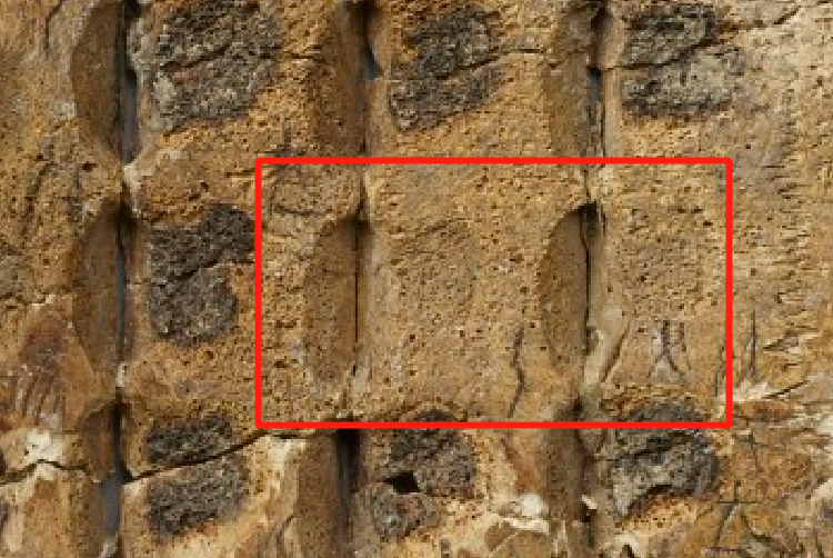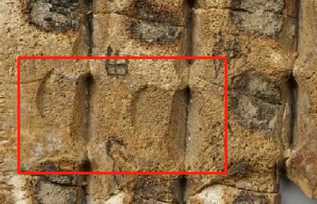 圖六:《合集》10936正面左甲夾角處照片及拓片局部圖