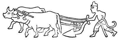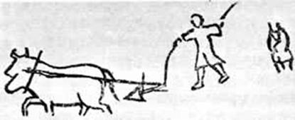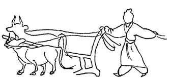在犁的發(fā)明初期,是以人拉犁,而不是以牛拉犁,以牛拉犁是較晚的事。