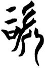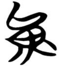 象人曲腿跪坐之形,該人形的手肘彎曲過(guò)背、手掌置於大腿上側(cè)、臀抵至腳跟上方。綜合字形和音韻兩方面看,