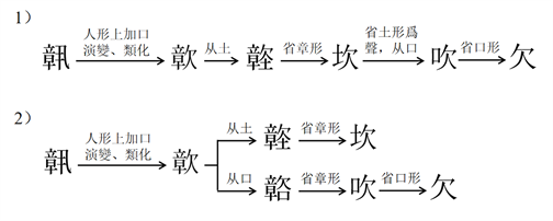 ”省去“章”後誕生的“坎”字,而作爲(wèi)單字的“欠”和其他“欠”聲字則是在它之後才產(chǎn)生的。