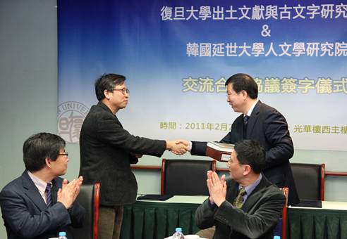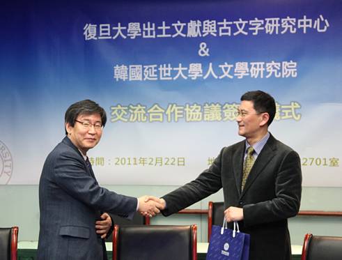2011年2月22日,韓國(guó)延世大學(xué)人文學(xué)研究院代表團(tuán)一行8人訪(fǎng)問(wèn)復(fù)旦大學(xué),並與我中心簽署了交流合作協(xié)議。