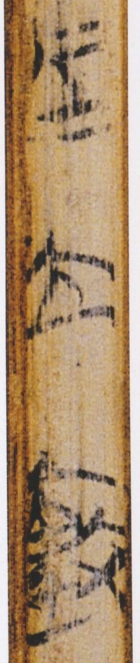 另外,〈李頌〉簡(jiǎn)3為〈蘭賦〉簡(jiǎn)4的背面,二篇可能同抄一卷,如果我們連同李頌的縮小圖板一起並參,會(huì)發(fā)現(xiàn)二篇都是從中編聯(lián)往上約一字之處斷裂,再對(duì)應(yīng)〈蘭賦〉簡(jiǎn)2上的相關(guān)位置,卻毫無(wú)損傷,這是很弔詭的事。再看〈李頌〉、〈蘭賦〉每一簡(jiǎn)中編聯(lián)處的上下兩字都比同簡(jiǎn)的的字距稍大,回過(guò)來(lái)觀察〈蘭賦〉簡(jiǎn)2上相對(duì)位置的中編聯(lián),應(yīng)在「蘭」「兮」之間,但這個(gè)地方不見(jiàn)契口,也沒(méi)有編繩的痕跡,二字也沒(méi)有較其他字的字距來(lái)得大。所以,我認(rèn)為原考釋者對(duì)〈蘭賦〉簡(jiǎn)2上的契口位置的判斷,應(yīng)當(dāng)是有問(wèn)題的。