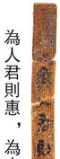 其最上方小殘片的綴合顯然也是有問(wèn)題的。其上明顯尚存有筆劃,應(yīng)爲(wèi)一字的殘形,原釋文於此完全未管?!盃?wèi)”字所在簡(jiǎn)片上,於“爲(wèi)”字右上方也還有殘點(diǎn);考慮到本篇中未見(jiàn)使用作一小橫或點(diǎn)的表示句讀、專名之類的符號(hào),這一點(diǎn)劃顯然也應(yīng)該是屬於另一字的殘筆。按睡虎地秦簡(jiǎn)《爲(wèi)吏之道》與此對(duì)應(yīng)的文句作“以此爲(wèi)人君則鬼(惠)”,[13]由此可以斷定,“爲(wèi)”字右上點(diǎn)劃應(yīng)即“此”字右下末筆的殘形,其上還應(yīng)有一“以”字,已完全殘失。“以”字字形較小,此處簡(jiǎn)首所殘失簡(jiǎn)片的位置是完全能容下的。