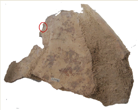 圖2《庫(kù)》1506背面。紅圈處為有灼痕的半個(gè)鑿眼。