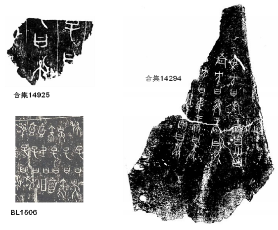 1956:陳夢(mèng)家在《殷墟卜辭綜述》一書(1988年版,頁(yè)499-501)以《庫(kù)》1506片刻辭,《燕京大學(xué)藏殷契卜辭》之《燕》209(即合集14925)與《殷虛文字乙編》之《乙》4856(即合集21727)三片作為商代家譜刻辭之例。[4]