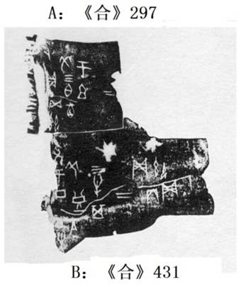 由此可見,類似文例的比勘是解決「白羌」問題的重要關鍵。至於卜辭中「白」、「百」二字用法雖然大部分確實判然有別,但如同曹先生所指出,仍存在少數(shù)混用的情形,在前引諸例之外筆者另舉《合》297為例來說明。此版由首都師範大學何會女士加綴《合》431,參見附圖貳,其相關辭例如下:[10]