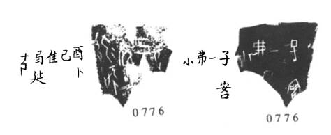 有文字的甲骨面,要盡量拍清楚文字的每一個筆畫。在文字的判定上,跟拍者要根據(jù)自己對甲骨材料的熟悉程度,及時準(zhǔn)確地辨識所要拍攝的文字信息。對於字跡清晰的甲骨來說,比較容易做到。對於字跡漫漶(比如剝蝕嚴(yán)重或反面)的甲骨來說,這一點(diǎn)至關(guān)重要。一般來講,只要跟拍者有能力確定漫漶字跡的內(nèi)容,攝影師能夠恰當(dāng)?shù)剡\(yùn)用光線,是可以最大程度地拍清楚字跡的。這就要求跟拍者有過硬的專業(yè)素養(yǎng),能在第一時間對所拍攝的漫漶不清的文字內(nèi)容作出準(zhǔn)確無誤的判斷。另外跟拍者要有足夠的細(xì)心和耐心去審視照片上每個甲骨文字的筆畫是否在攝影師的燈光下能正確的顯現(xiàn)出來[3]。《山博》8.42.15反(即《山博珍藏》776反)由於在甲骨反面,字跡特別漫漶不清,前幾張照片的字跡顯現(xiàn)與劉敬亭拓本同,後來筆者從不同角度仔細(xì)、反復(fù)觀察甲骨實(shí)物之後,斷定最右側(cè)一字為“害”,“蟲”的頭部和尾部的鏈接筆畫已經(jīng)剝落。之後讓攝影師不斷調(diào)整燈光,直至顯示出來的文字與漫漶的甲骨實(shí)物上的文字相同。這張反面照片大概拍攝了30張左右,照片上的字跡要比實(shí)物更加清晰。如果沒有跟拍的話,這一版是無論如何也拍不到目前這種清晰程度的。