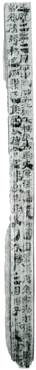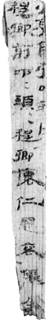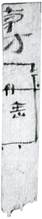 號(hào)。出現(xiàn)次數(shù)也不多,多位於簡(jiǎn)末,是確認(rèn)符的一種,最具代表性的是簡(jiǎn)73EJT10:314。此簡(jiǎn)列舉多個(gè)人名,每個(gè)人名下還對(duì)應(yīng)有數(shù)字,然後用