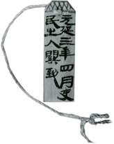 另外簽牌上面的網(wǎng)格紋,似乎不能算作符號(hào)。這是簡(jiǎn)首涂黑的那種簽牌的簡(jiǎn)省形式,涂墨較麻煩,遂畫(huà)網(wǎng)格紋代替,就和“丁”字在漢印上部中變成網(wǎng)格紋那種簡(jiǎn)省方式相類(lèi)