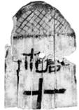 號(hào)。這一組符號(hào)分別位於簡(jiǎn)牘的上下兩端,將文字包含在內(nèi)。位於上端的符號(hào)上粗下細(xì),寫(xiě)作