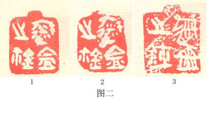 宋書升還提到了三鈕“涖盟之鈢”印,其一是潘祖蔭所藏,見于《古璽匯編》0200(圖二:1)。另二鈕為陳文懿所藏,見于《古璽匯編》0201、0202(圖二:2、3)盟字的寫法與陽都邑大璽稍異。但形制相同,上緣也有突出。性質相同,也是涖盟所用,只是沒署邑名。