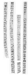 不過(guò),上舉第5簡(jiǎn)簡(jiǎn)尾有“百廿七字”的計(jì)數(shù)。從目前五段簡(jiǎn)上保留的總字?jǐn)?shù)看,除去第5簡(jiǎn)的“百廿七字”4字,這五段簡(jiǎn)共餘36+25+6+33(不計(jì)重文)+21=121字,距所謂“百廿七字”只缺6字。但是,從內(nèi)容上看,這四段內(nèi)容並不連貫:第1簡(jiǎn)“亢之爲(wèi)言”之後應(yīng)有別的內(nèi)容,可能還有別的缺簡(jiǎn);第2簡(jiǎn)殘去上部5-6字,跟《孝經(jīng)·孝治章》對(duì)照,殘去的部分不可能容下“昔者明王之以孝治天下也,不敢遺小國(guó)之臣”之類的內(nèi)容,其前應(yīng)有別的缺簡(jiǎn);第3簡(jiǎn)爲(wèi)殘片,它是否能跟第2簡(jiǎn)拼綴,還有待證實(shí);第4簡(jiǎn)雖然內(nèi)容上比較完整,但它跟其他簡(jiǎn)內(nèi)容上的關(guān)係不明確;第5簡(jiǎn)開(kāi)始就說(shuō)“《行葦》則兄弟俱暱矣”,從文氣上看,前面也應(yīng)該有其他內(nèi)容,很可能存在缺簡(jiǎn)??傊?,這五簡(jiǎn)雖然內(nèi)容上都跟《孝經(jīng)》有關(guān),但可能並不屬於同一篇章。可能這種《孝經(jīng)》傳注或解說(shuō)包含兩個(gè)以上的章節(jié),第5簡(jiǎn)末尾所記字?jǐn)?shù)可能只是其中一個(gè)章節(jié)的字?jǐn)?shù)。像馬王堆漢墓帛書(shū)《老子》乙本卷前佚書(shū)前兩篇那樣,大篇內(nèi)都分小篇,每小篇之末都記篇名,第一篇分九個(gè)小篇(《道法》、《國(guó)次》、《君正》、《六分》、《四度》、《論》、《亡論》、《論約》、《名理》),最後一篇篇名“名理”之下記“經(jīng)法凡五千”,是總篇名和字?jǐn)?shù)。第二篇分15小篇,前14小篇之末都記篇名(《立[命]》、《觀》、《五正》、《果童》、《正亂》、《姓爭(zhēng)》、《雌雄節(jié)》、《兵容》、《成法》、《三禁》、《本伐》、《前道》、《行守》、《順道》),最後一小篇本身無(wú)篇名,下記“十大經(jīng)凡四千□□六”是總篇名和字?jǐn)?shù)。[21]雖然這兩篇下的小篇之末只記篇名而不記字?jǐn)?shù),不過(guò)既然是相對(duì)獨(dú)立的小篇,每篇末記篇內(nèi)字?jǐn)?shù)的情況也可能存在??上壳皝K沒(méi)有見(jiàn)到類似的、末尾記字?jǐn)?shù)的其他簡(jiǎn)文。【今按:按照廣瀨薰雄先生的指點(diǎn),簡(jiǎn)73EJT31:44A+T30:55背下端書(shū)有簡(jiǎn)序號(hào)“七十二”,簡(jiǎn)73EJT31:102背下端書(shū)有簡(jiǎn)序號(hào)“八十二”,簡(jiǎn)73EJT31:104背下端書(shū)有簡(jiǎn)序號(hào)“百四”,以及下面提到的簡(jiǎn)73EJT31:42背下端書(shū)有簡(jiǎn)序“六十八”,這些序號(hào)表明我們討論的幾支簡(jiǎn)之間的缺簡(jiǎn)很多。另外,31號(hào)探方中還有一支簡(jiǎn),即73EPT31:101,正面書(shū)寫(xiě)的文字“