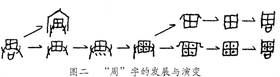 ,像雙手向田間撒播種子,口像盛種子的筐簍,會意。周字有不少的異體,圖示其發(fā)展演變關系(圖二)。周人始祖以農(nóng)立國,故以撒播種子的會意字作為國名[3]。