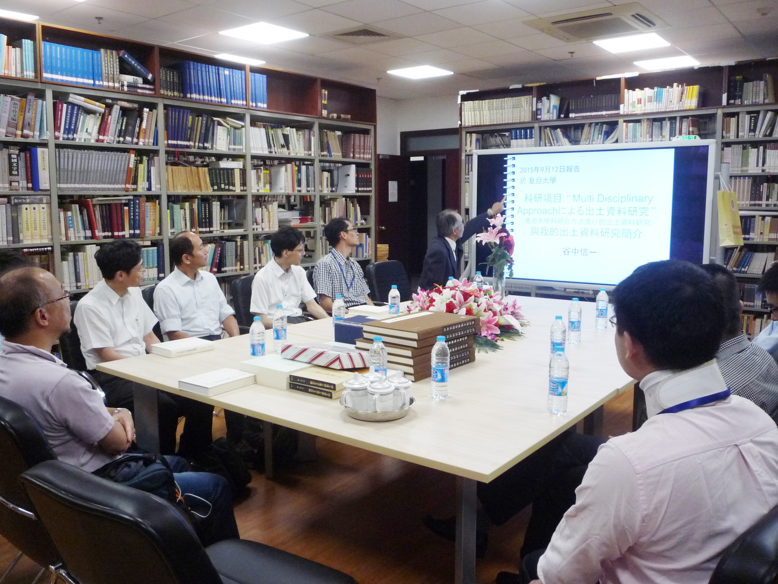 2015年9月12日下午,日本女子大學(xué)谷中信一教授,東京大學(xué)大西克也教授、小寺敦教授及博士生宮島和也,廣島大學(xué)末永高康教授,山梨縣立大學(xué)名和敏光教授等一行六人來中心訪問交流。中心主任劉釗教授、陳劍教授、廣瀨薰雄副研究員、郭永秉副教授等研究人員參加了座談。谷中教授作了題爲(wèi)“‘通過多學(xué)科研究方法進(jìn)行的出土資料研究’與我的出土資料研究”的報告。劉釗教授和陳劍教授介紹了中心目前承擔(dān)的科研工作,重點介紹了“2011計劃協(xié)同創(chuàng)新中心”的工作計劃。