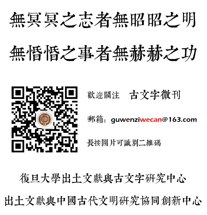 Copyright 2008-2018復(fù)旦大學(xué)出土文獻(xiàn)與古文字研究中心版權(quán)所有 滬ICP備10035774號(hào) 地址:復(fù)旦大學(xué)光華樓西主樓27樓 郵編:200433