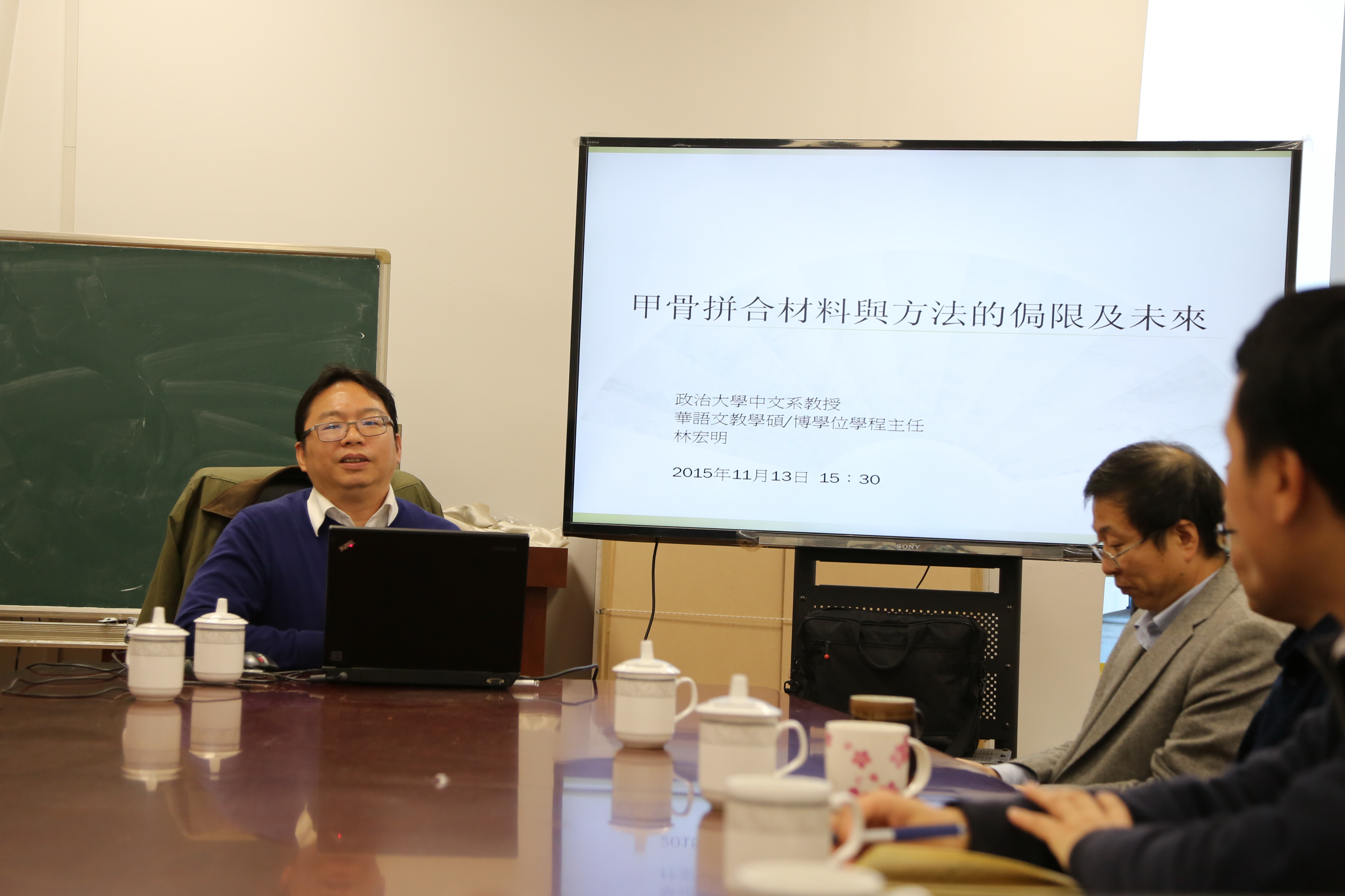 11月13日下午,臺(tái)灣政治大學(xué)中國(guó)文學(xué)系林宏明教授來我中心作了題爲(wèi)“甲骨拼合材料與方法的局限及未來”的學(xué)術(shù)講座。
