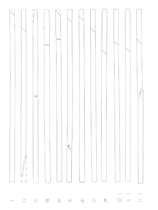 由圖表可以看出簡(jiǎn)8、11之間可能容納二至三簡(jiǎn),此處以兩簡(jiǎn)計(jì)算。而簡(jiǎn)9與簡(jiǎn)10背後刻痕的位置較低,可能代表在此兩簡(jiǎn)之前皆有不少的簡(jiǎn)文殘缺,可以推測(cè)〈陰陽(yáng)家言〉一篇的實(shí)際簡(jiǎn)數(shù),可能遠(yuǎn)超過現(xiàn)存的十二枚簡(jiǎn)。