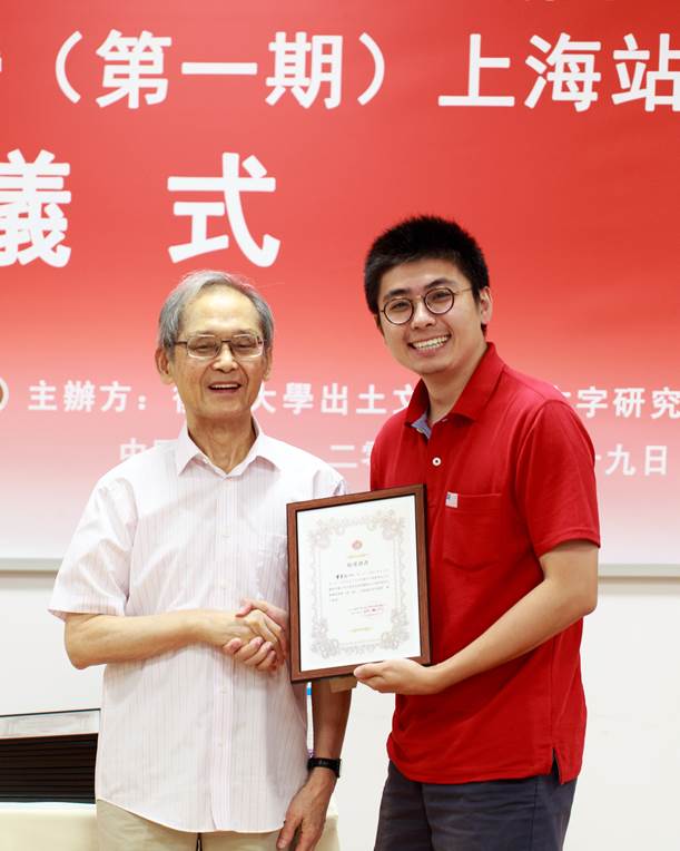 19日下午,研習(xí)營舉辦結(jié)業(yè)儀式。結(jié)業(yè)儀式由劉釗教授主持。裘錫圭教授向研習(xí)營學(xué)員頒發(fā)結(jié)業(yè)證書。