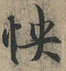 晉王羲之《蘭亭集序》有“快然自足”一語。其中“快”字,在現(xiàn)存蘭亭臨摹本中基本作“怏”。蘭亭八柱第二本(世稱褚遂良摹本)作“快”,但其字形明顯有折中“快”與“怏”的痕跡,可推知其所臨原本為“怏”。但是,自《晉書》至《古文觀止》的各種史傳文集,均將該語錄作“快然自足”。作“怏”的書法碑帖和作“快”的詩文典籍的兩大體系長期并行。潁上本蘭亭刻帖(又名“思古齋本”)在“怏”字旁注一“快”字,可以代表當時取“怏”之形而取“快”之義的調和態(tài)度。[1]