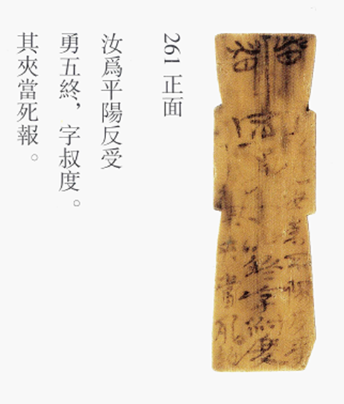 第261號牘圖案、文字皆清晰完整。原釋文為: