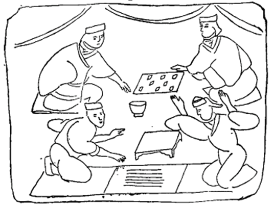 圖五 甘肅嘉峪關(guān)畫(huà)像磚上的六博圖