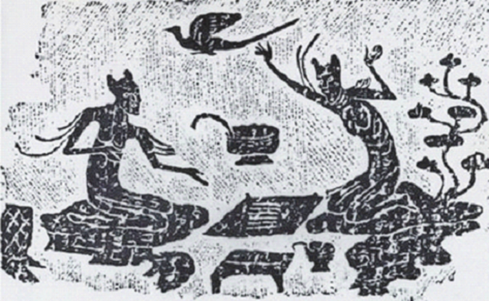 圖四 四川新津畫(huà)像石上的仙人(羽人)六博圖
