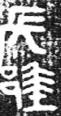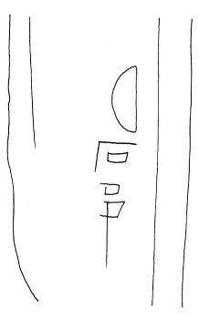 ”形部分是“尾”字,人形被刻寫(xiě)得橫置,尾字所從中間一筆兩側(cè)應(yīng)該向側(cè)下叉出的像“尾 ”形的筆劃因刻寫(xiě)不便被刻成了兩個(gè)直筆。尾字最下部有些漫漶模糊?!?SPAN lang=EN-US>