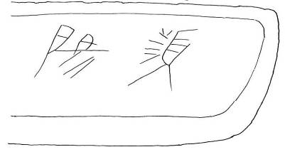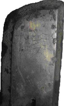 在內(nèi)的上部正背兩面也都各刻有銘文,正面刻有兩字作: