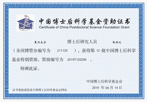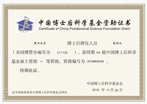 我中心博士後郭洪義獲中國博士後科學基金資助