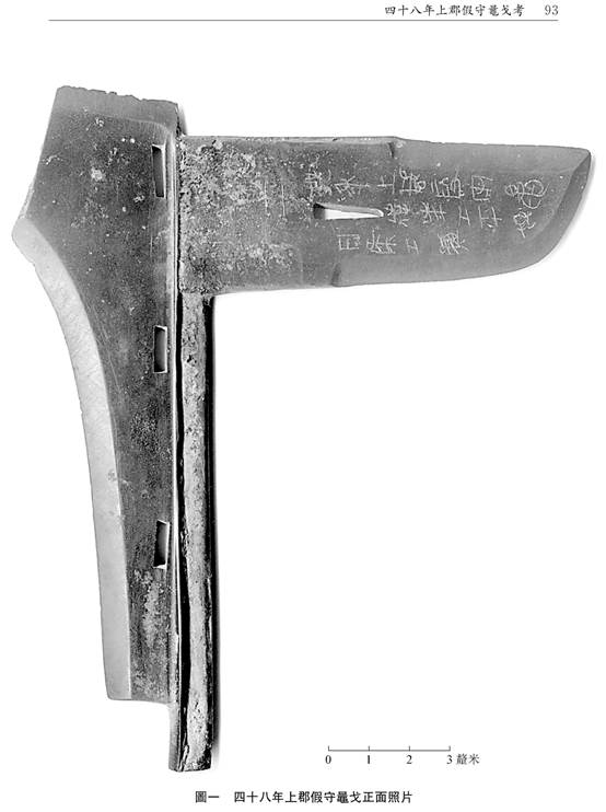 圖九 元年上郡假守暨戈器形與銘文摹本/119