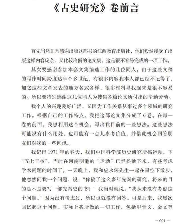 《李學勤文集》收錄了李學勤先生自1956年至2018年期間所撰寫的中文論著,約1000萬字,分為7大類,即:古史研究(附文明起源研究,共6冊)、甲骨學研究(附文字起源研究,共4冊)、青銅器研究(附銅鏡研究,共6冊)、戰(zhàn)國文字研究(附古文字學通論,共1冊)、簡帛學研究(共3冊)、學術史研究(附國際漢學研究,共3冊)、序跋雜文(共6冊)。全套文集共30冊,最后一冊為目錄和索引。每一大類中先收專著,再收論文。值得注意的是,在每一大類的最前面,李先生生前都專門以口授完成了一篇“前言”,講述自己的研究體會。為體現(xiàn)歷史的原貌,除修正個別排印錯誤和為符合國家出版規(guī)范所做一些必要的調(diào)整外,收入文集中的論著均一仍其舊?!独顚W勤文集》展現(xiàn)了李學勤先生60余年科研工作中所走過的學術道路,為全面了解李先生的學術成果提供了豐富材料,同時也將為中國學術、中國文化的繁榮做出特殊貢獻。
