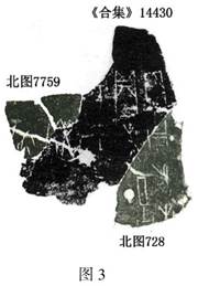 第三則:《合集》14430(《鐵》90.3、《鐵新》107、《德瑞荷比》S12)+北圖728+北圖7759,綴合結(jié)果見圖3