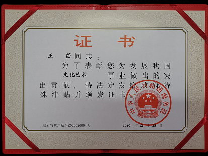 近期,我中心2019級博士生王茁被國務(wù)院授予“享受政府特殊津貼專家”稱號,以表彰她為發(fā)展我國文化藝術(shù)事業(yè)做出的突出貢獻。