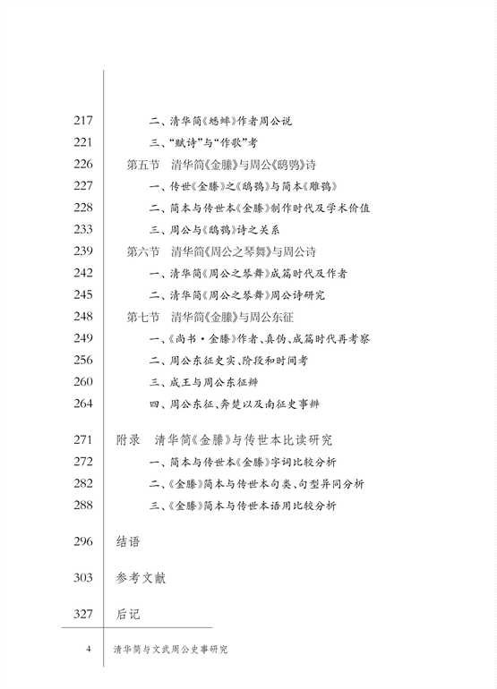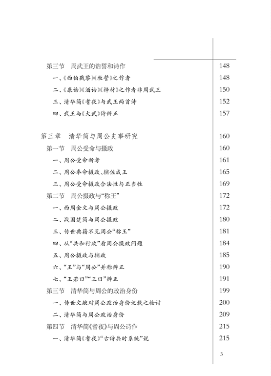 其四,可謂四個“深化”,即作者全面系統(tǒng)地深化文王史事研究、深化武王史事研究、深化周公史事研究,以及深化《金縢》文本比較研究。從文王受命稱王到武王受命稱王,從武王受命稱王再到周公受命攝政,圍繞這樣的歷史發(fā)展進程,以清華簡檢驗補正相關(guān)史事,重新審視論證周初史事,包括《金縢》文本的比較研究,可謂有所發(fā)現(xiàn)、有所突破、有所創(chuàng)新、有所收獲。