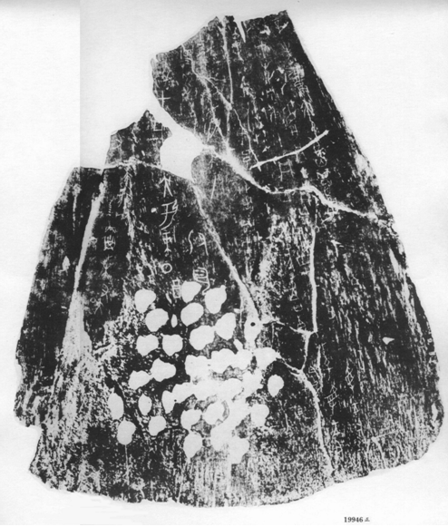 [12] 蔡哲茂:《甲骨新綴二十七則》,第十八組綴合,將此片綴以五片無(wú)號(hào)碎甲a、b、c、d、e。並將此條卜辭隸釋為“貞:王亡