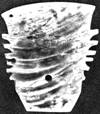 林巳奈夫和林澐先生都曾舉出土的商代「玉戚」來跟甲骨文的「戚」字字形相對照。[11]玉戚早在二里頭文化即已出現(xiàn),[12]歷經(jīng)商代至西周時期,形制基本沒有大的變化。[13]下面我們也列舉一些出土玉戚之形,來證明△字象玉戚之形的看法(下引玉戚之形原圖都是刃部向下放置的,為便於比較,我們將其倒過來刃部向上)。
