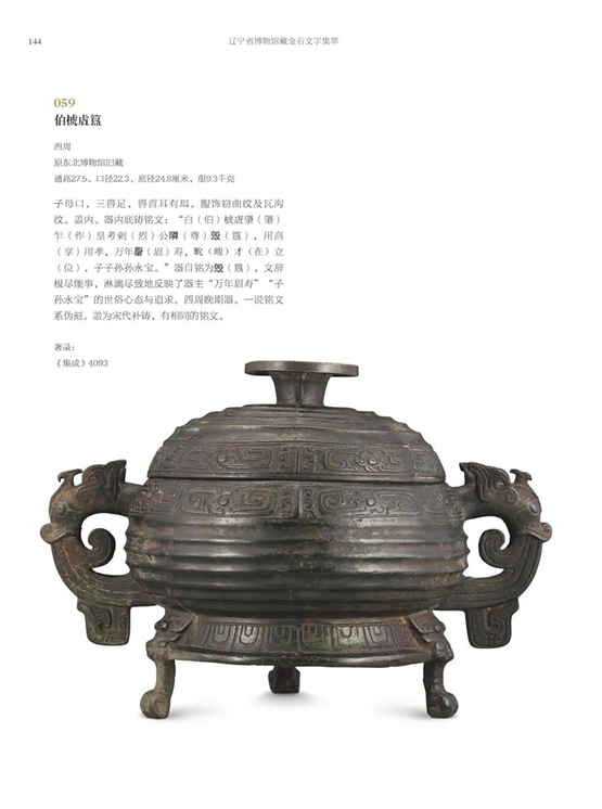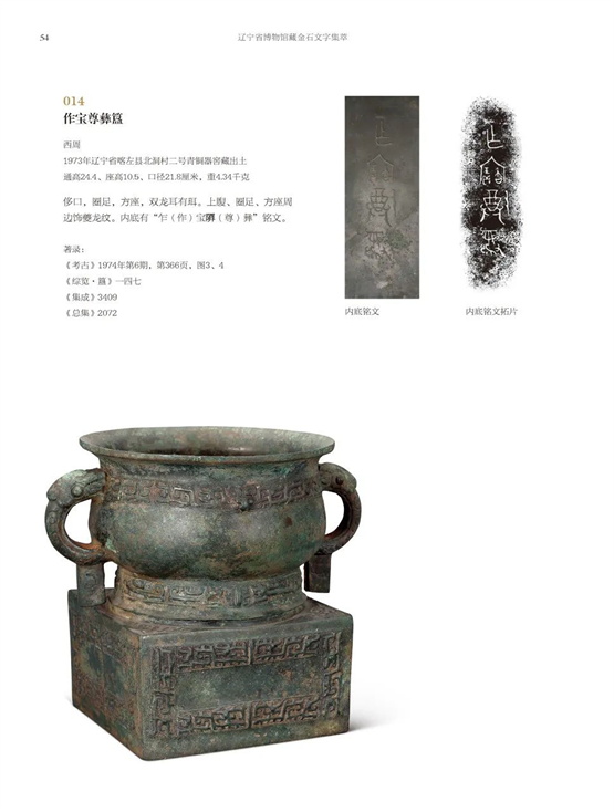 本書收錄的傳世青銅器多為早年收入館中的藏品,其來源有原東北博物館舊藏、原東北文物管理處撥交、鐵嶺市有色金屬熔煉廠揀選、從文物商店購入等。特別是三代吉金在羅振玉編著的《夢郼草堂吉金圖》《三代吉金文存》等書中多有著錄,此外還有吳式芬、榮厚、李泰棻、陳介祺等人舊藏的商周彝器。