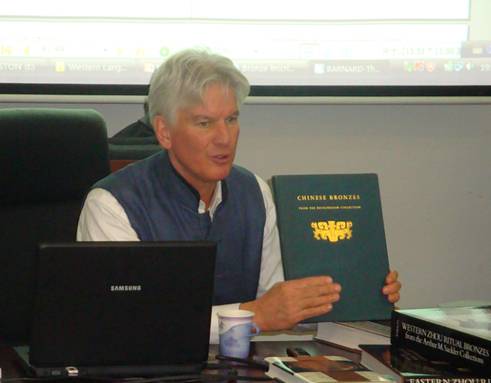 15日的第一場講座題為“西方金文學(xué)史”。夏含夷教授介紹了自20世紀(jì)前葉直至近年一百多年間歐美澳三地的青銅器研究,著重介紹了銅器銘文方面的研究。通過講座,夏含夷教授勾勒出西方青銅器銘文研究的發(fā)展軌跡,并對(duì)西方一些主要學(xué)者及其研究成果進(jìn)行了評(píng)論。