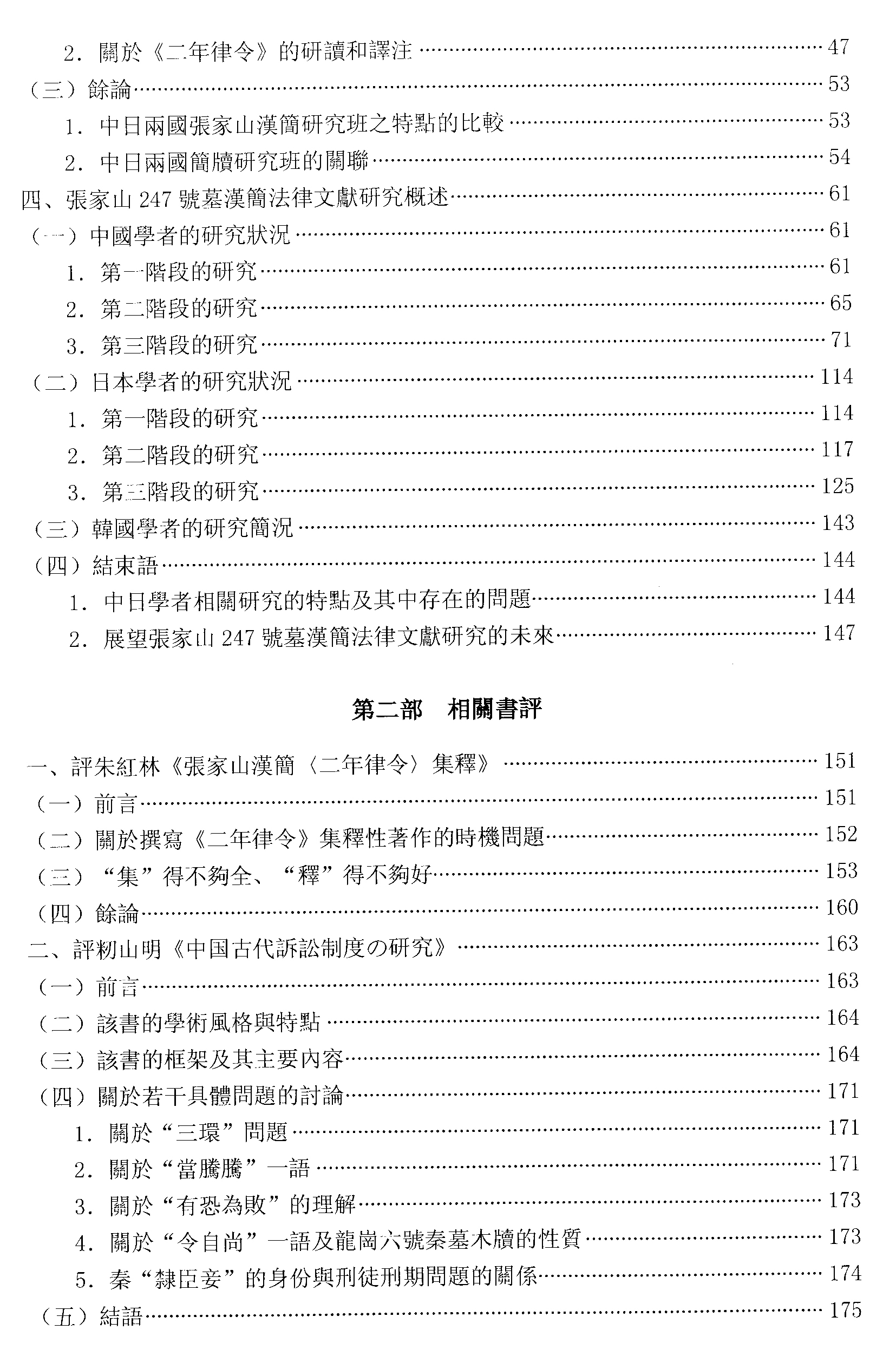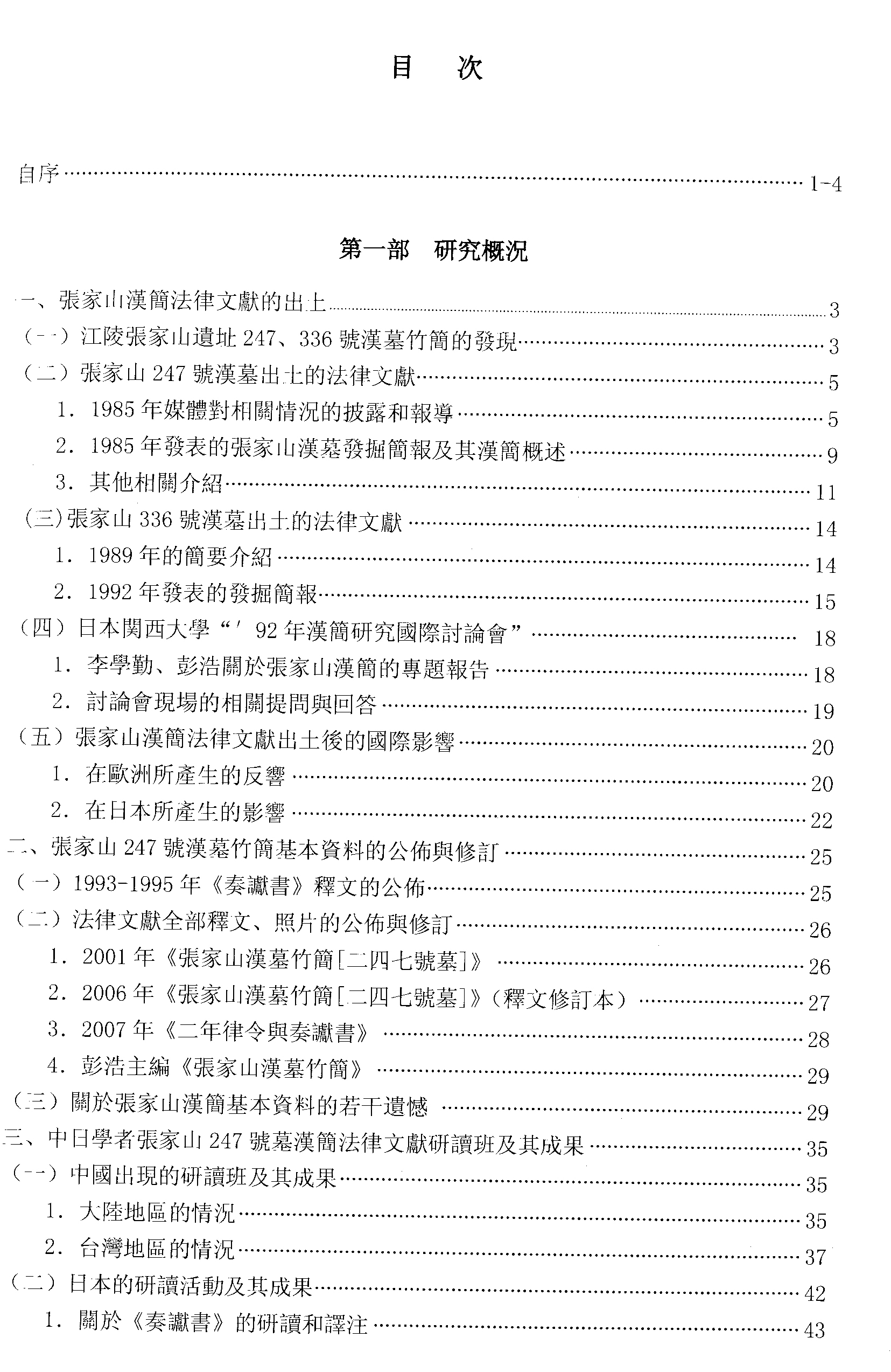 中國(guó)青年政治學(xué)院李力教授的專(zhuān)著《張家山247號(hào)墓?jié)h簡(jiǎn)法律文獻(xiàn)研究及其述評(píng)(1985.1-2008.12)》于2009年11月由東京外國(guó)語(yǔ)大學(xué)亞非言語(yǔ)文化研究所出版發(fā)行。該書(shū)分為三部分。第一部分是介紹張家山247號(hào)墓?jié)h簡(jiǎn)法律文獻(xiàn)的研究概況;第二部分是對(duì)五種研究張家山漢簡(jiǎn)法律文書(shū)的主要著作的評(píng)論;第三部分是對(duì)“徒隸”身份等六個(gè)專(zhuān)門(mén)問(wèn)題的討論。另有附錄,是張家山247號(hào)墓?jié)h簡(jiǎn)法律文獻(xiàn)研究論著目錄,分為中文和日文兩類(lèi),搜集文獻(xiàn)截止至2008年12月。