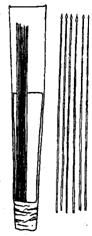 殆及古文函字。古者盛矢之器有二種,皆倒載之。射時(shí)所用者為箙,矢栝與笴之半皆露於外,以便於抽矢,![]()