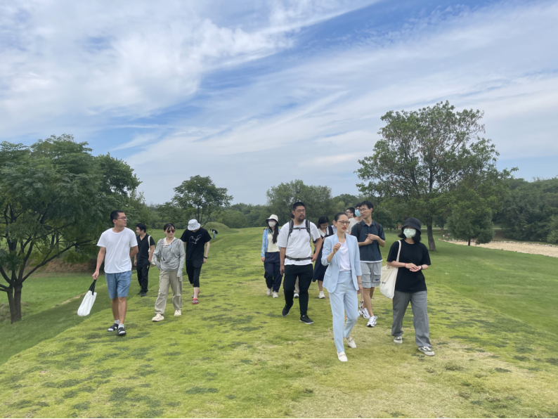 8月24日下午,聯(lián)合考察團(tuán)師生參觀了安陽殷墟王陵遺址。同學(xué)們實(shí)地考察了王陵區(qū)中多個墓葬區(qū)的分布情況及保護(hù)現(xiàn)狀,并按順序參觀了園中“車馬坑陳列館”“王陵墓葬展覽館”“M260展廳”等展陳。