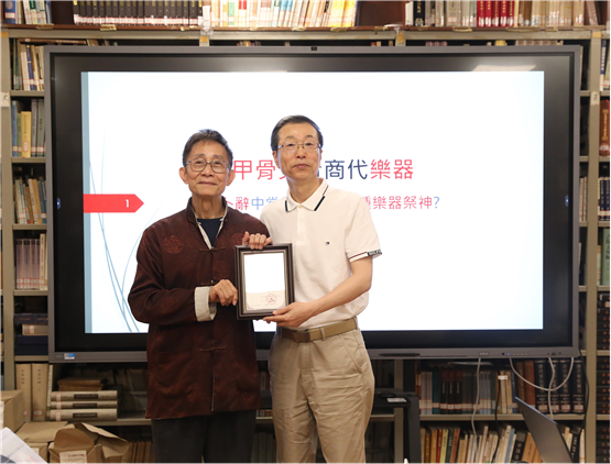 唐健垣先生結(jié)合自身對樂器的研究,考察了甲骨卜辭中出現(xiàn)的商鐘、庸、磬、笙、鼗、竽、鼓、塤等樂器,並利用出土樂器實物、漢畫像石中的作樂場景等資料對相關(guān)祭祀用樂術(shù)語作了深入探討。最後,唐先生附帶分享了自己研習(xí)甲骨文的經(jīng)驗。