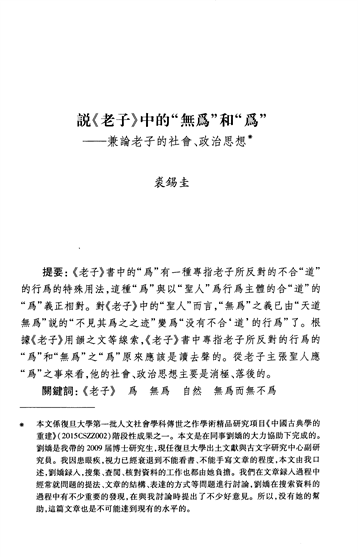 《說〈老子〉中的“無為“和“為”——兼論老子的社會(huì)、政治思想》