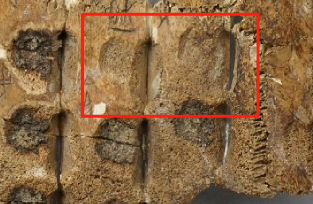 圖二:《合集》10936反面右前甲3-4排辭10照片及拓本局部圖